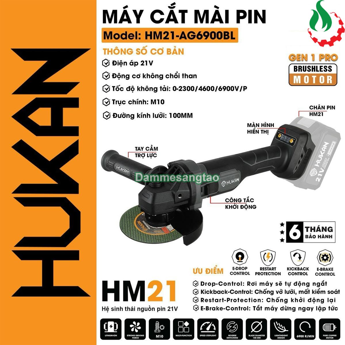 Máy mài góc pin 21V Hukan HM21-AG6900BL (3 cấp tốc độ)