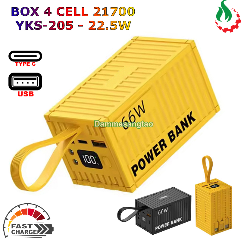 Box sạc dự phòng Container 4 cell 21700 (YKS-205) Sạc nhanh 22.5W