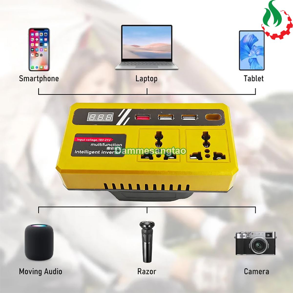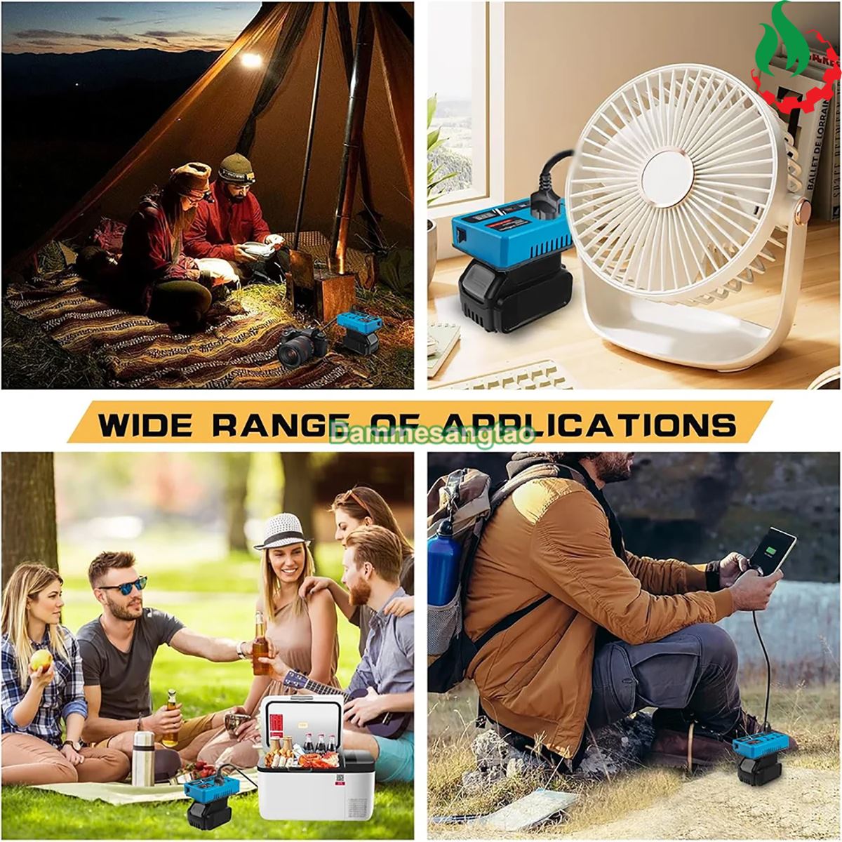* Đế chuyển pin 18V-21V sang 220V và USB sạc nhanh PD25W (Chân pin Makita, DeWalt, Mil)