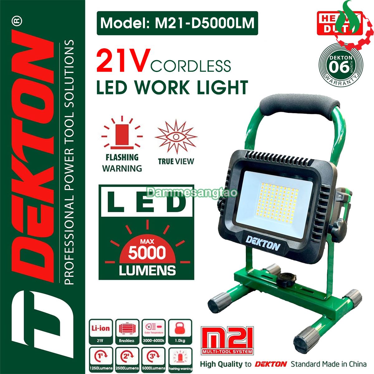 Đèn công trình pin 21V Dekton M21-D5000LM Độ sáng 1250-5000 Lumens