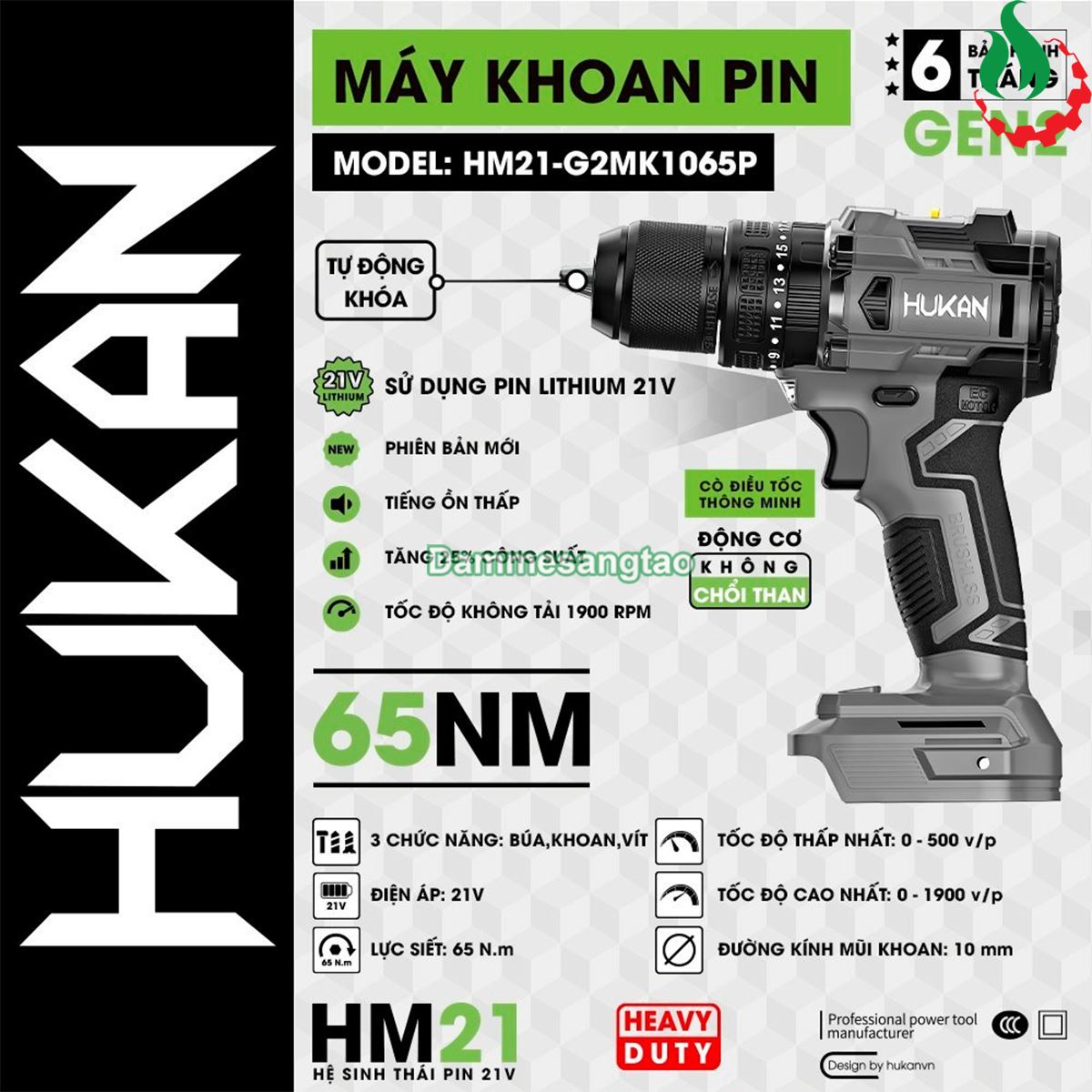 Máy khoan pin 21V Hukan HM21-G2MK1065P 65Nm (Không chổi than)