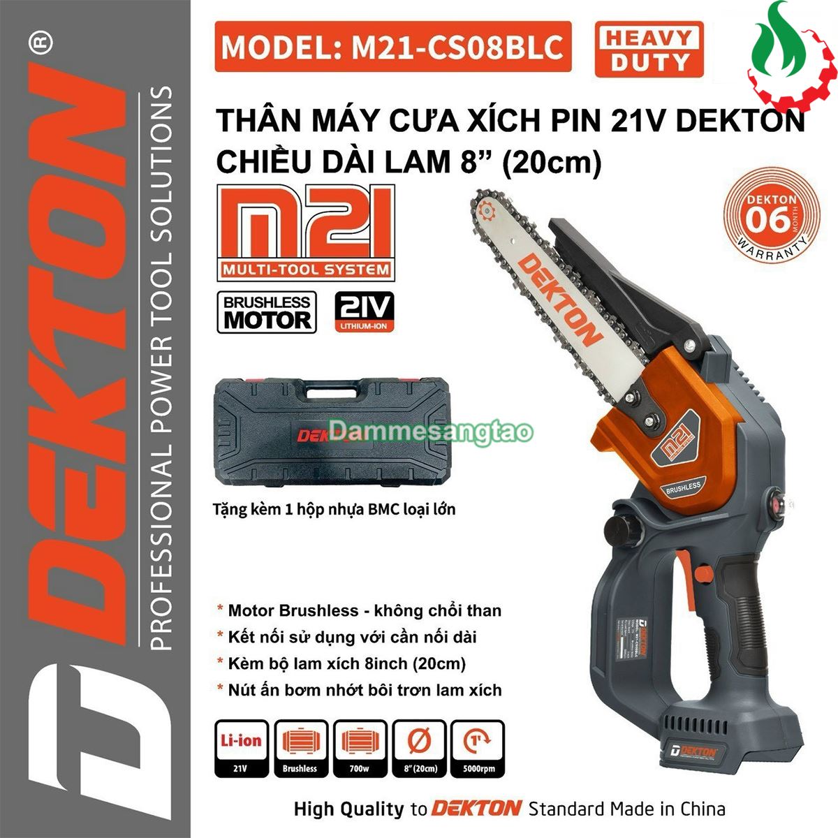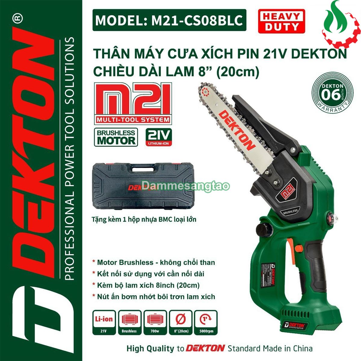 Máy cưa xích pin 21V Dekton M21-CS08BLC Lam xích 8inch (20cm)