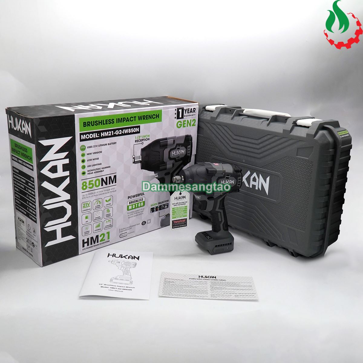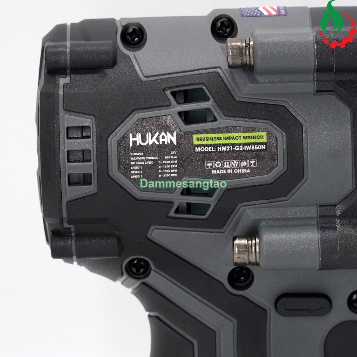 - Tên sản phẩm: Máy siết bulong pin HUKAN HM21-G2-IW850N, Lực siết 850Nm, Động cơ Không chổi than, Đầu bulong đặc 1/2